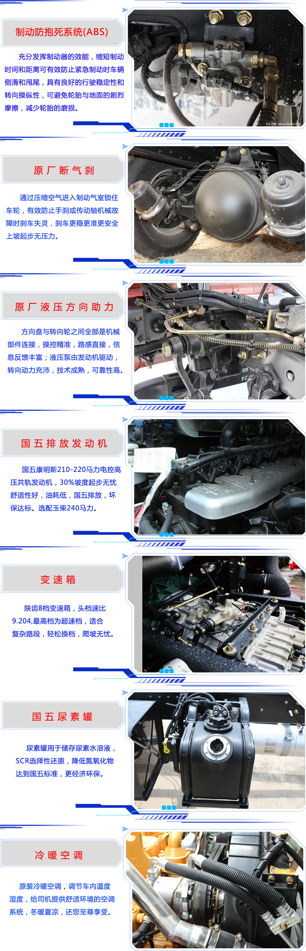 | 其他 | 1,罐體有效容積18.82立方米,介質(zhì):丙酮水溶液,密度:800千克/立方米,罐體尺寸為(mm): 6900×2400×1500。2,防護(hù)材料:Q235A碳鋼,連接方式:左右側(cè)面及后下部防護(hù)均采用焊接連接,后部防護(hù)斷面尺寸(mm):150×50,后部防護(hù)離地高度(mm):550。3,ABS控制器型號(hào)為ABS-E 4S/4M,生產(chǎn)廠家為威伯科汽車控制系統(tǒng)(中國(guó))有限公司 。4,文字噴涂位置、車輛顏色及局部細(xì)節(jié)可變化。 | ||