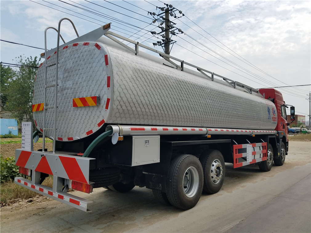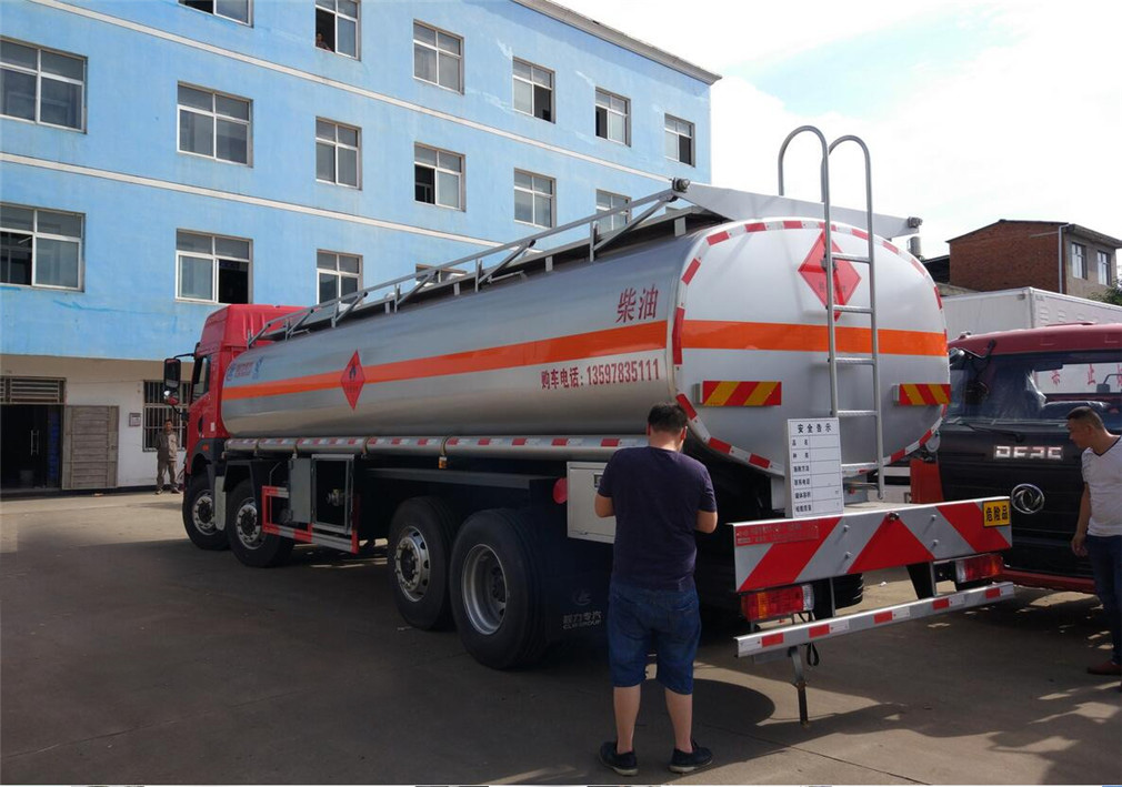 | 其他 | 该车适用于危险品运输,运输介质:柴油,汽油,煤油,介质密度分别为:0.83吨/立方米, 0.75吨/立方米, 0.80吨/立方米,类项号:3;罐体有效容积:22.7立方米, 罐体外形尺寸(长×长轴×短轴)(mm)为:8400×2450×1560。防护材料:Q235A碳钢,连接方式:左右侧面及后部防护均采用焊接连接,后部防护断面尺(mm):120×50, 后部防护离地高度(mm):520。仅采用底盘子午线轮胎和带ABS的底盘,该车前轮安装盘式制动器,前置排气管,装配限速装置,限速80km/h。安装带有卫星定 | ||