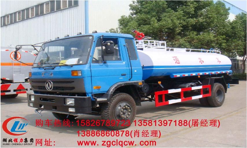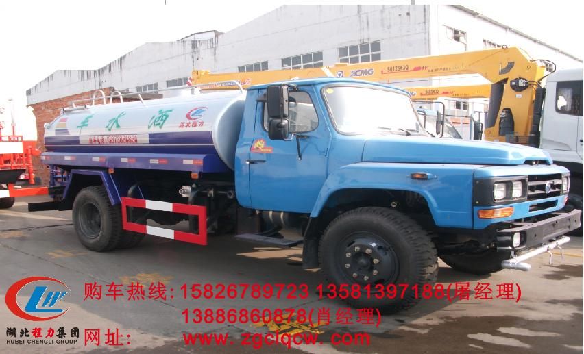 東風(fēng)平頭145、153運水車(罐體容積10000--15000L)東風(fēng)康明斯170馬力、190柴油發(fā)動機(jī)和廣西玉柴160馬力、180馬力柴油發(fā)動機(jī),9.00-20輪胎,帶方向助力,帶增壓、斷汽剎,5檔變速箱,3.6噸前橋,9噸后橋,整車外形尺寸:長×寬×高(mm)8350×2470×3050,總質(zhì)量(kg):16000,額定質(zhì)量(kg):,8000整備質(zhì)量(kg):7805,該車罐體有效容積:10噸-15噸,該車帶國家免征公告!