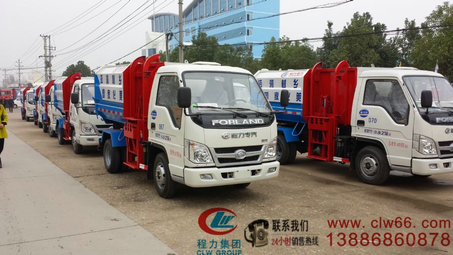 程力福田掛桶式垃圾車(又名福田自裝卸式垃圾車)采用國標型優(yōu)質板材制作密封式垃圾廂,容積3立方,采用鏈條和液壓油缸聯(lián)動裝置,實現(xiàn)對垃圾桶提升和翻轉,將多處垃圾桶內的垃圾自動收入車廂,并到目的地一次性自卸出來.具有全密封,自裝自卸功能,液壓操作.。適用于全國通用標準的垃圾桶:鐵桶、塑料桶。