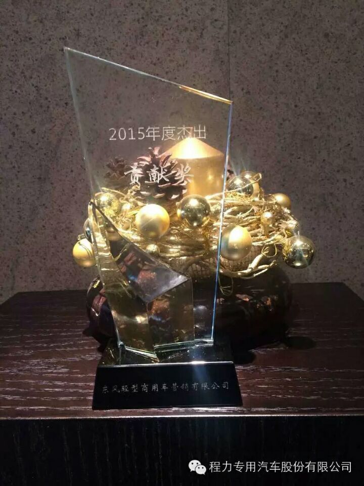 2015年12月19日,在武漢市,榮譽(yù)的桂冠再次戴到了程力公司的頭上,程力再度榮獲“東風(fēng)股份”專用車杰出合作伙伴獎(jiǎng) ”,東風(fēng)輕型商用車營(yíng)銷公司杰出貢獻(xiàn)獎(jiǎng),東風(fēng)工程車優(yōu)秀經(jīng)銷伙伴獎(jiǎng)。