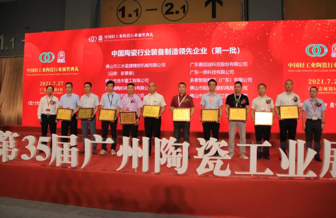 2021年7月27日上午,由中國陶瓷工業(yè)協(xié)會主辦、廣東新之聯(lián)展覽公司承辦的2021中國國際陶瓷工業(yè)技術與產品展覽會(簡稱“2021廣州陶瓷工業(yè)展”),在廣州琶洲·廣交會展館A區(qū)正式開幕。中國建材咸陽陶瓷研究設計院有限公司應邀參加開幕典禮,并榮獲陶瓷行業(yè)裝備制造領先企業(yè)獎。