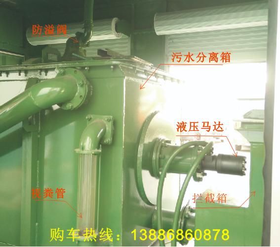 高配:18.5Kw電機,水環(huán)真空泵抽速2.8m³/min(4Kw),排污泵流量:120m³/h(11Kw),齒輪泵(3Kw),污水分離箱尺寸:1600X1000X1000(mm),容積1.5立方,配4根100mm吸污管(每根6米)。
