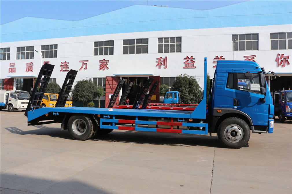| 其他 | 该车仅用于运送不可拆解物体。防护材料:Q235A碳钢,连接方式:左右侧面与平板纵梁采用焊接连接, 后部防护与车架采用焊接连接,后部防护断面尺寸(mm):110×50,后部防护离地高度(mm):400,该车安装带有卫星定位功能的行驶记录仪。该车选用发动机型号BF6M2012-20E51, BF6M2012-18E5,BF4M2012-16E5,CA4DK1-18E51,CA4DK1-22E51对应的油耗值分别为(L/100km):25.14;24.83;24.86,23.62,23.62。ABS系统生产厂 | ||