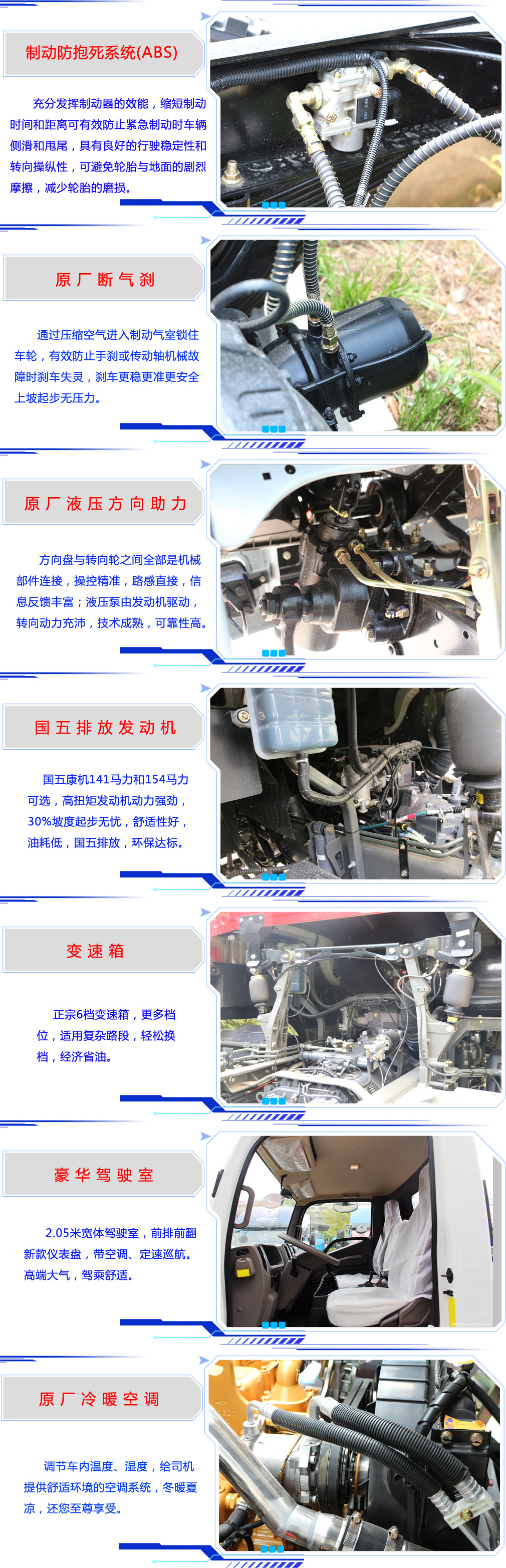 | 其他 | 1、罐體有效容積5.2立方米,運(yùn)輸介質(zhì):液態(tài)污物,密度800千克/每立方米,軸距(mm)/罐體外形尺寸(長×長軸×短軸)(mm)的對(duì)應(yīng)關(guān)系為:3360/3700×1700×1200,3800/4150×1600×1150;2、側(cè)防護(hù)及后下部防護(hù)裝置均采用Q235A材質(zhì),均采用焊接連接, 后部防護(hù)斷面尺寸(mm):300×50,后部防護(hù)離地高度(mm):450。3、ABS廠家:威伯科汽車控制系統(tǒng)(中國)有限公司,型號(hào):44600XXXX0。4、文字噴圖位置、車輛顏色及局部細(xì)節(jié)可變化。5、隨底盤選裝駕駛室。 | ||
