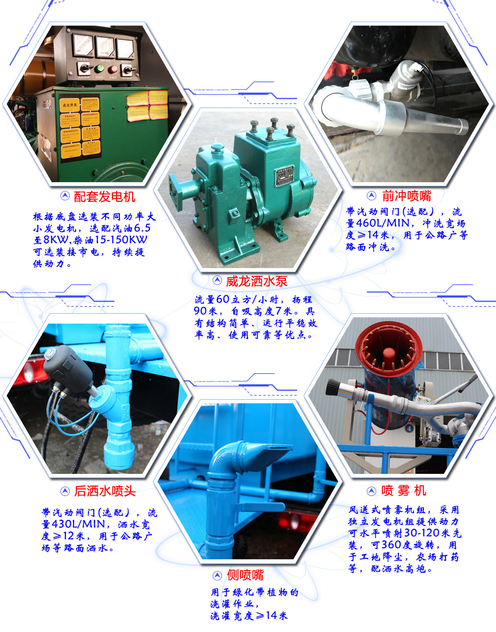 | 其他 | 1,罐體有效容積:13.44立方米,罐體尺寸(mm):4500×2400×1600;整車長/前懸的對應(yīng)關(guān)系為(mm):10640/1515,10575/1450,10375/1250.2,側(cè),后防護(hù)裝置材料材質(zhì):Q235A,側(cè),后防護(hù)均用連接,后部防護(hù)裝置斷面尺寸(寬×高)60×150(mm),后部防護(hù)離地高度:510mm;3, ABS生產(chǎn)廠家: 東科克諾爾商用車制動系統(tǒng)(十堰)有限公司,型號:3631010-C2000;4,隨底盤選裝駕駛室,選裝駕駛室遮陽板與側(cè)面臥鋪開窗口;5,文字噴涂位置,車輛顏色及局部細(xì)節(jié)可變化。5、專用裝置:罐體和噴霧機(jī),主要用于抑塵。選裝不同的外形圖片。專用裝置為抑塵霧炮,型號為LM-40,生產(chǎn)廠家為湖北龍馬汽車裝備有限公司。 | ||