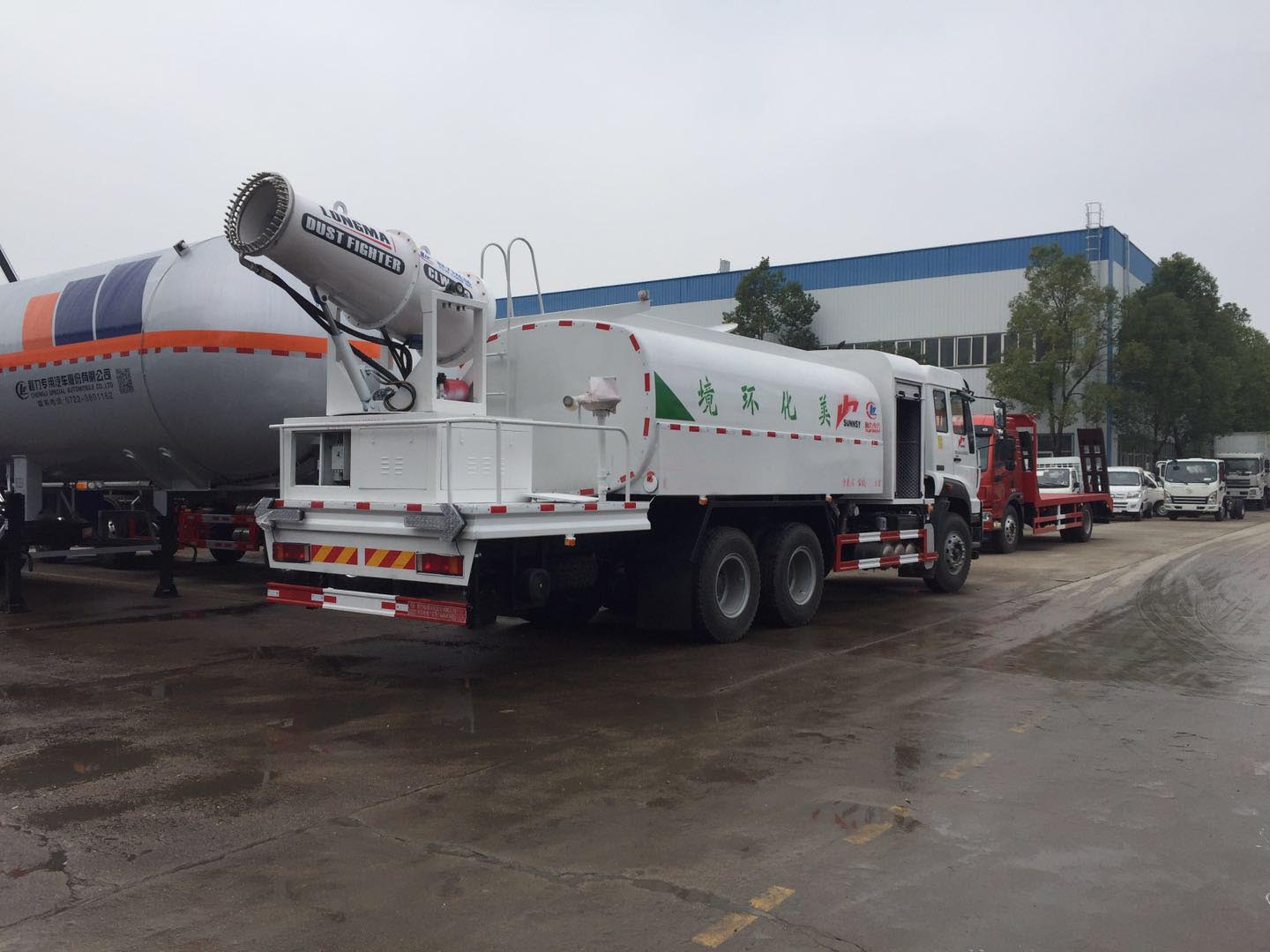 | 其他 | 隨底盤安裝ABS系統,型號為4460046300,生產企業(yè)為威伯科汽車控制系統(中國)有限公司;側防護與后防均采用Q235A材質,與副梁焊接鏈接,后下部防護裝置截面尺寸為高120mm,寬50mm,后下部防護裝置離地高度為540mm,后防與車架采用焊接連接.此車罐體容積為:11.29立方米,罐體為橢圓,罐體長為4540mm,長軸為2430mm,短軸為1640mm.整車長度/軸距對應關系為(mm):10350/4350+1350,10550/4550+1350,11700/5700+1350.噴霧機型號:LM-100,生產廠家:湖北龍馬汽車裝備有限公司.選裝不同的外形圖片. | ||